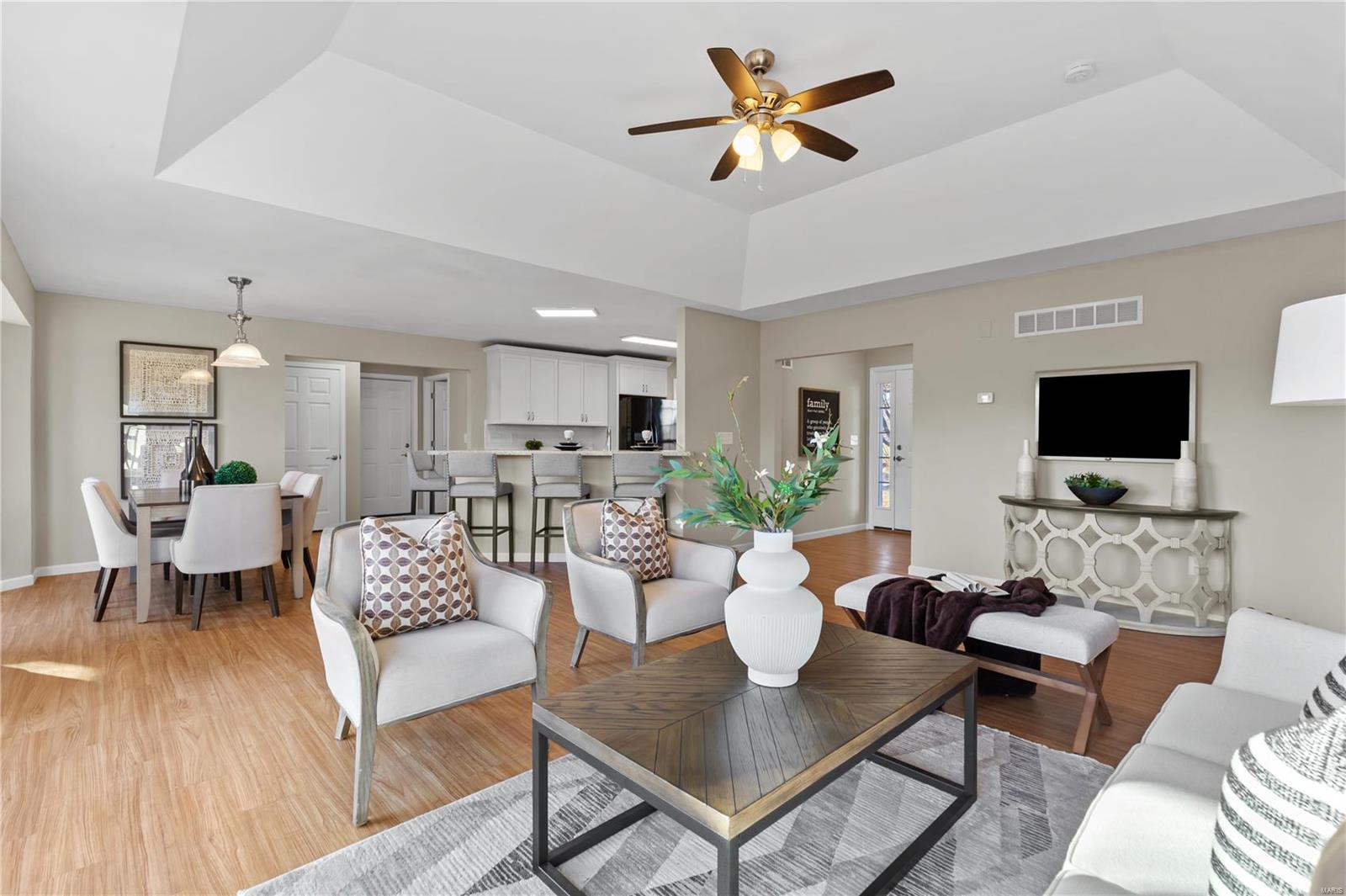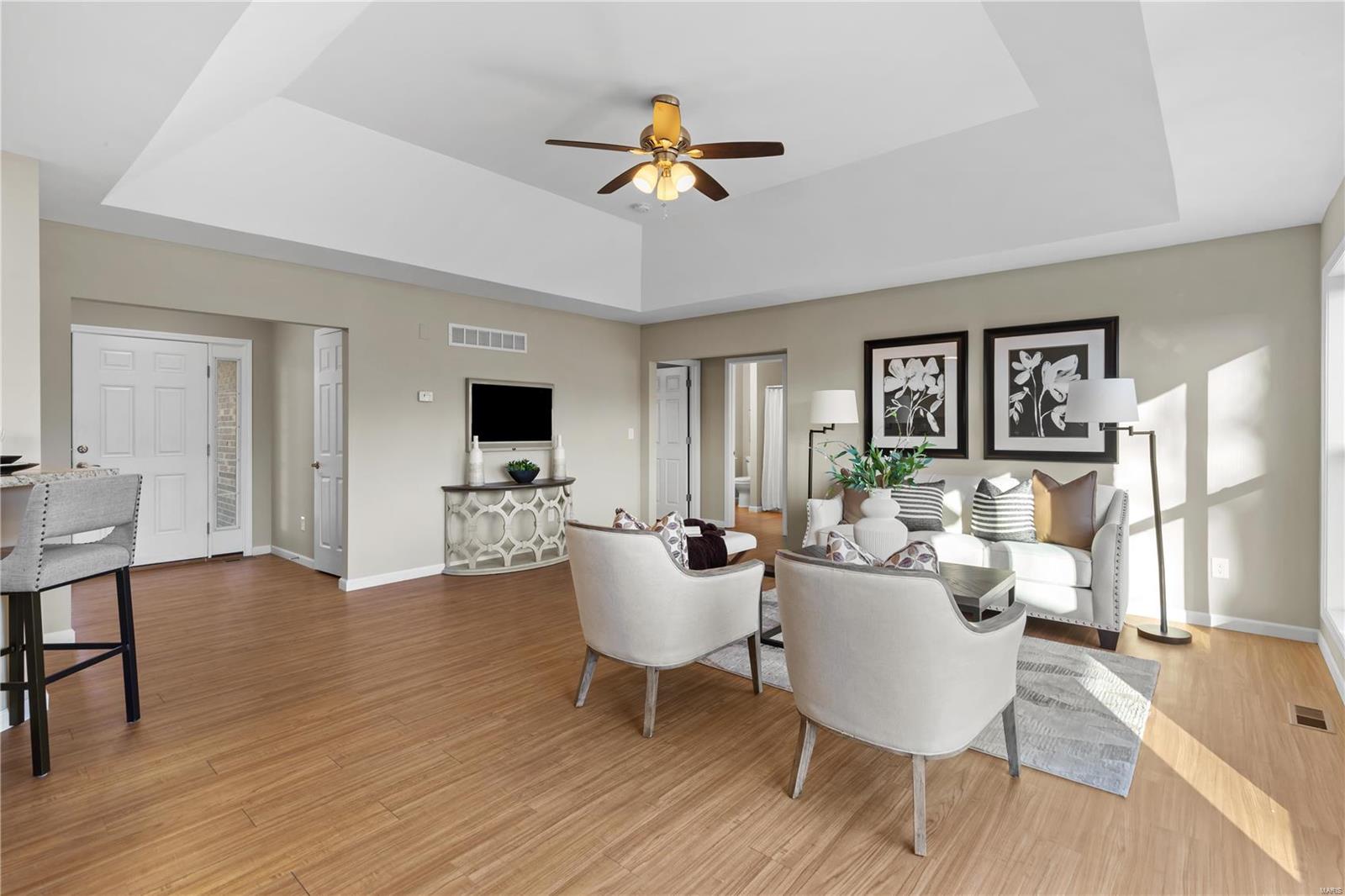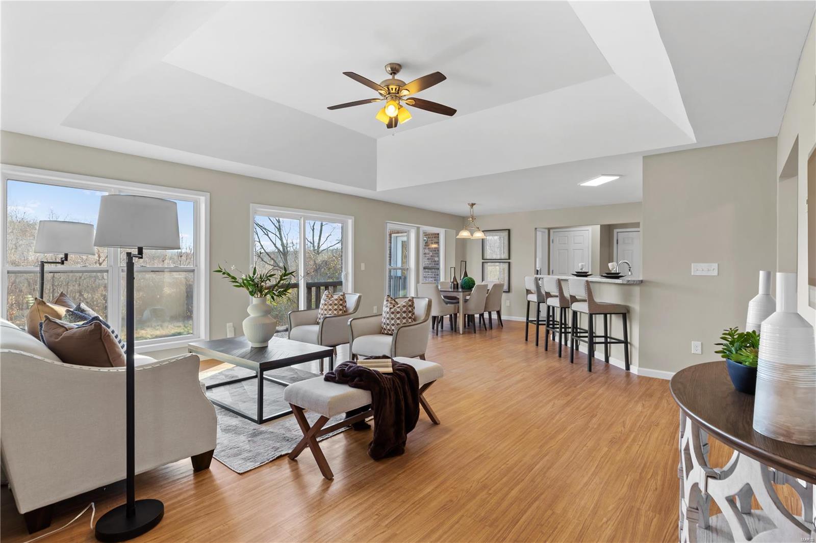 Escape to your private country paradise in Defiance in Francis Howell Schools! Discover this stunning, freshly painted 3-bedroom, 2-bath home, perfectly nestled on 26 picturesque acres featuring a serene 3-acre lake. This property offers the ideal blend of modern living & country charm. Step inside to an open floor plan designed for comfort & entertaining. The kitchen is ready for hosting with its white cabinets, subway tile backsplash, walk-in pantry & breakfast bar—perfect for gathering with family & friends. The spacious primary suite boasts a large walk-in closet, a tiled shower, large vanity & a separate toilet room for added privacy. Additional highlights include a 2-car garage, plenty of room to roam, unbeatable proximity to Defiance's wineries, restaurants & bars. Whether you're looking for a peaceful retreat or a place to host unforgettable gatherings, this property truly has it all. Don’t miss your chance to own this breathtaking slice of paradise—schedule your tour today!